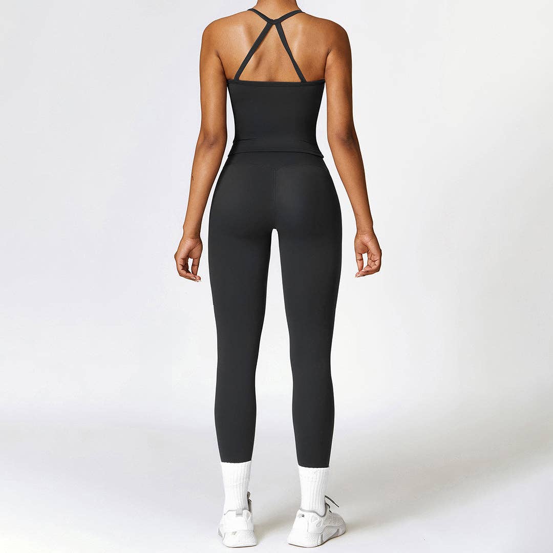 Breathable brushed top with cross-back straps for added support and standout style